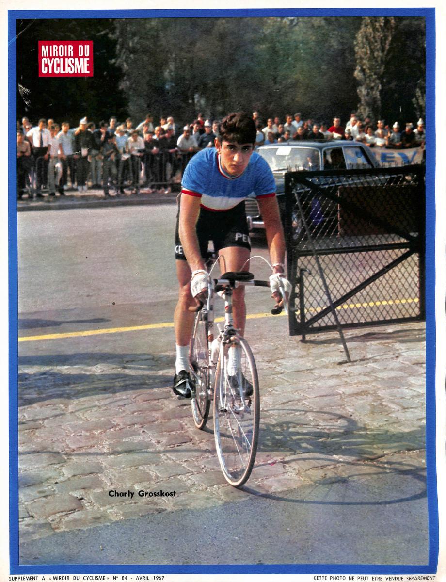 PHOTO DE CHARLY GROSSKOST SUPPLÉMENT N°84 DU MIROIR DU CYCLISME D'AVRIL 1967. Dimensions 24,5 x 32 cm. Bon état (il peut apparaitre quelques pliures ou trous de punaises).