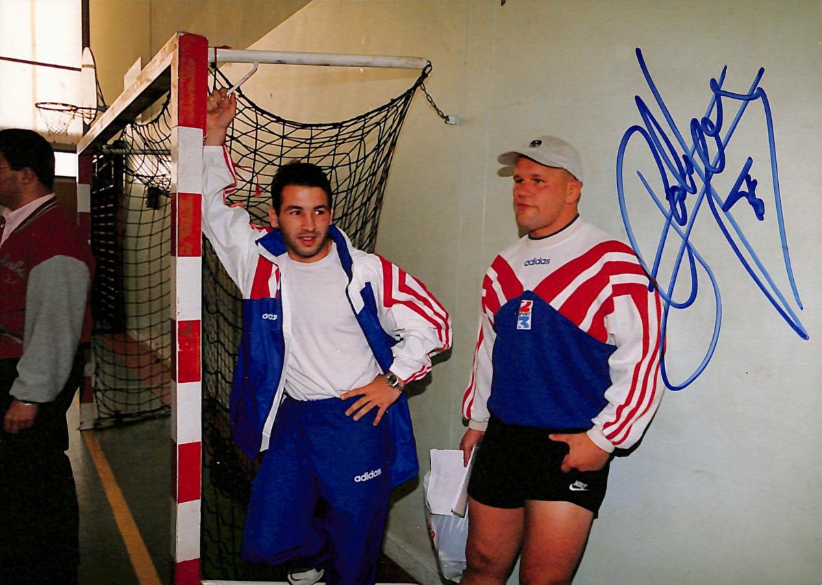 PHOTO ORIGINALE DE PRESSE DE CHRISTIAN CALIFANO (RUGBY) AVEC AUTOGRAPHE DU RUGBYMAN. Format 12,5x18 cm. Bon état.