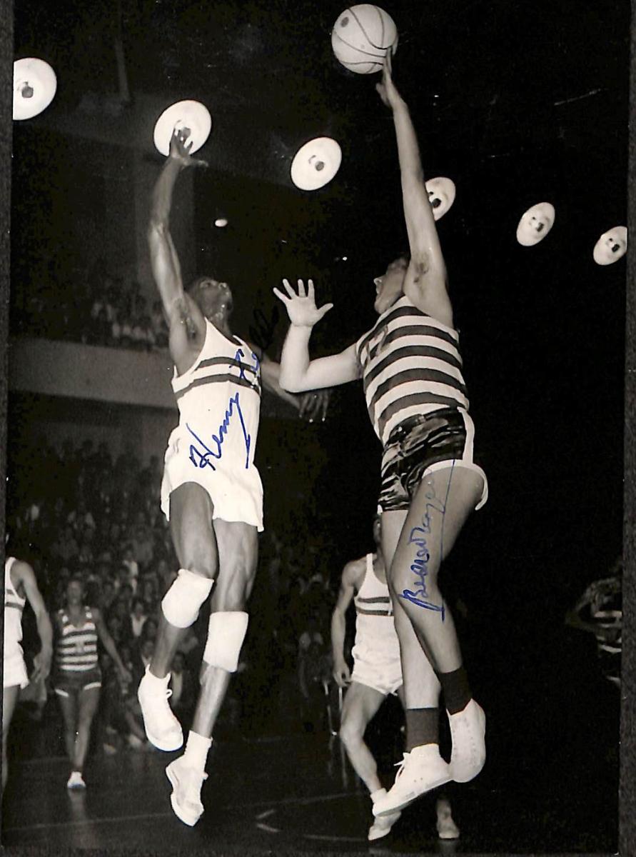 PHOTO ORIGINALE DE PRESSE AVEC LES AUTOGRAPHES DE FIELDS ET MAYEUR DU MATCH P.U.C. VS BAGNOLET ANNÉES 60. Format 13 x 18 cm. Bon état.