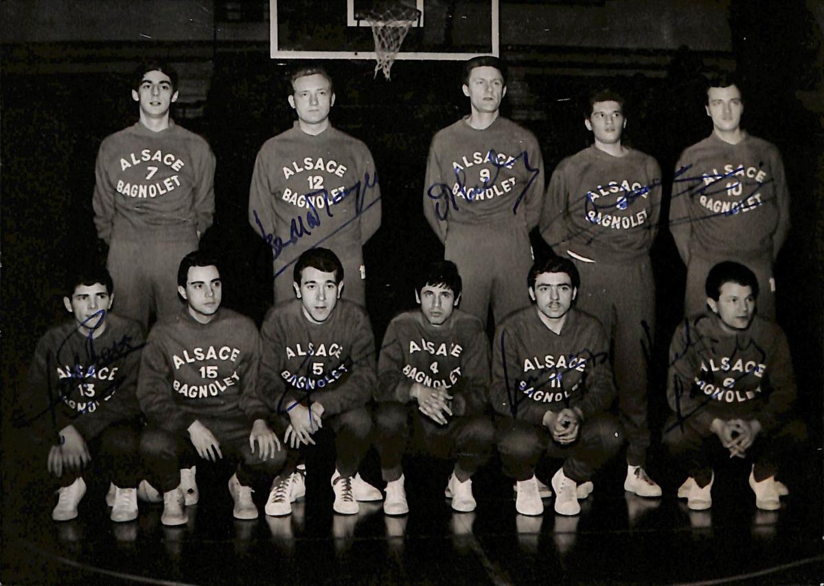 PHOTO ORIGINALE DE PRESSE AVEC LES AUTOGRAPHES DE 8 JOUEURS DE L'ALSACE DE BAGNOLET LE 30 AVRIL 1963. Format 18 x 13 cm. Bon état.