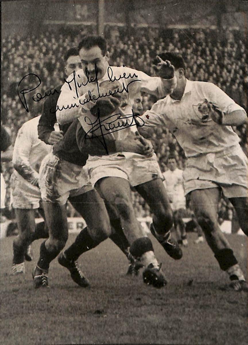 PHOTO ORIGINALE DE PRESSE AUTOGRAPHIÉE PAR MICHEL CRAUSTE AVEC L'ÉQUIPE DE FRANCE LE 2 DÉCEMBRE 1963. Format 13 x 18 cm. Bon état.