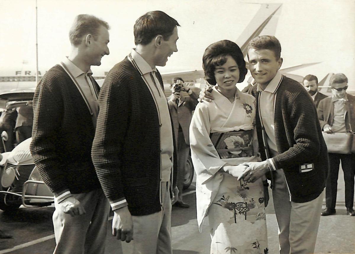 PHOTO ORIGINALE DE PRESSE À L'ARRIVÉE POUR LES JEUX OLYMPIQUES DE TOKYO EN 1964. Format 18 x 13 cm. Bon état.