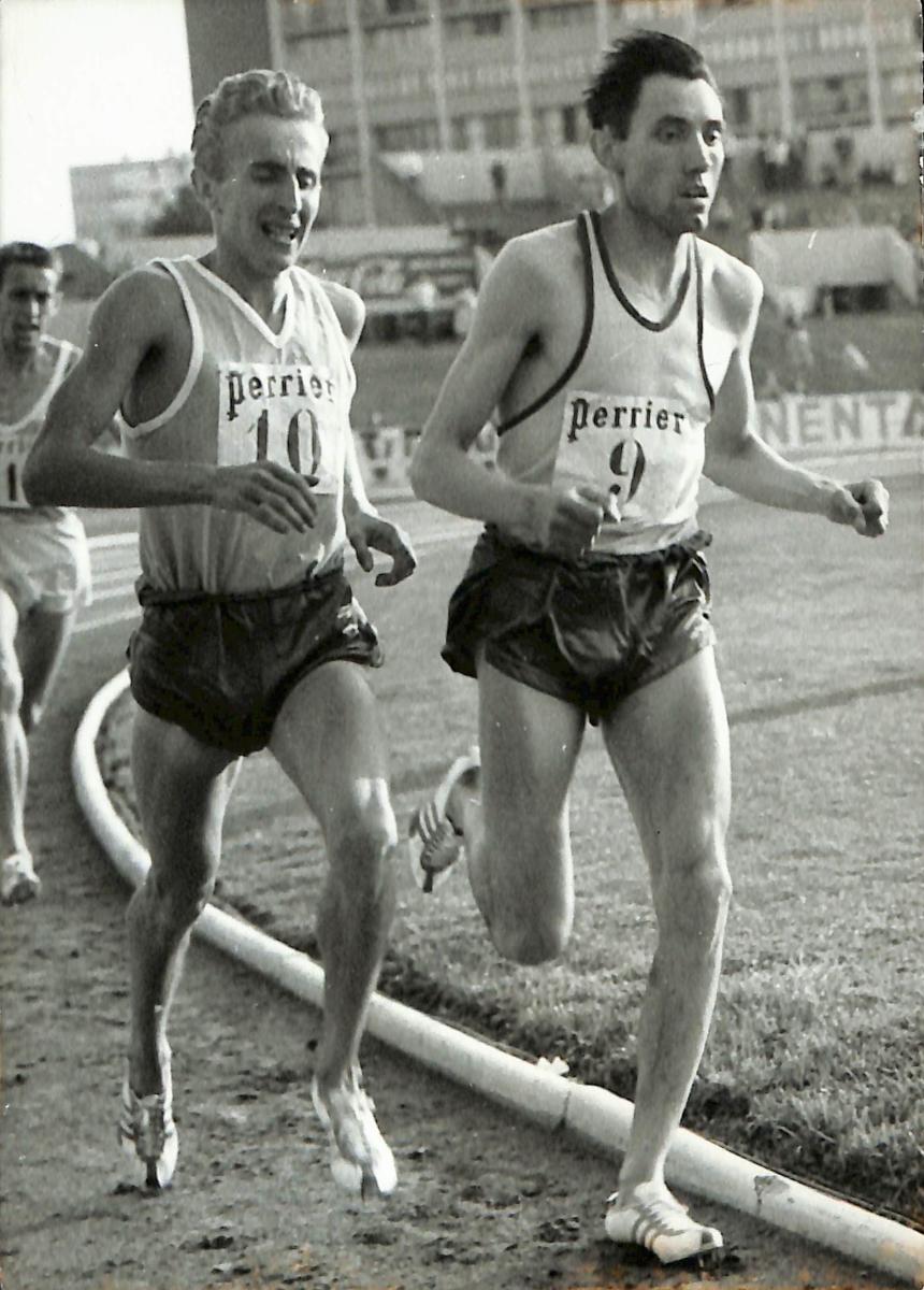 PHOTO ORIGINALE DE PRESSE DE BOGEY ET BERNARD (10 000 MÈTRES) LE 4 AOÛT 1962. Format 13 x 18 cm. Bon état.