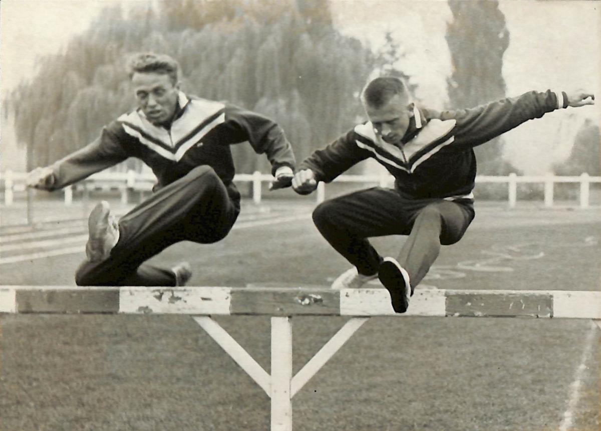 PHOTO ORIGINALE DE PRESSE DE 2 ATHLÈTES EN TENUE D'ENTRAINEMENT (SAUT DE HAIES). Format 18 x 13 cm. Bon état.