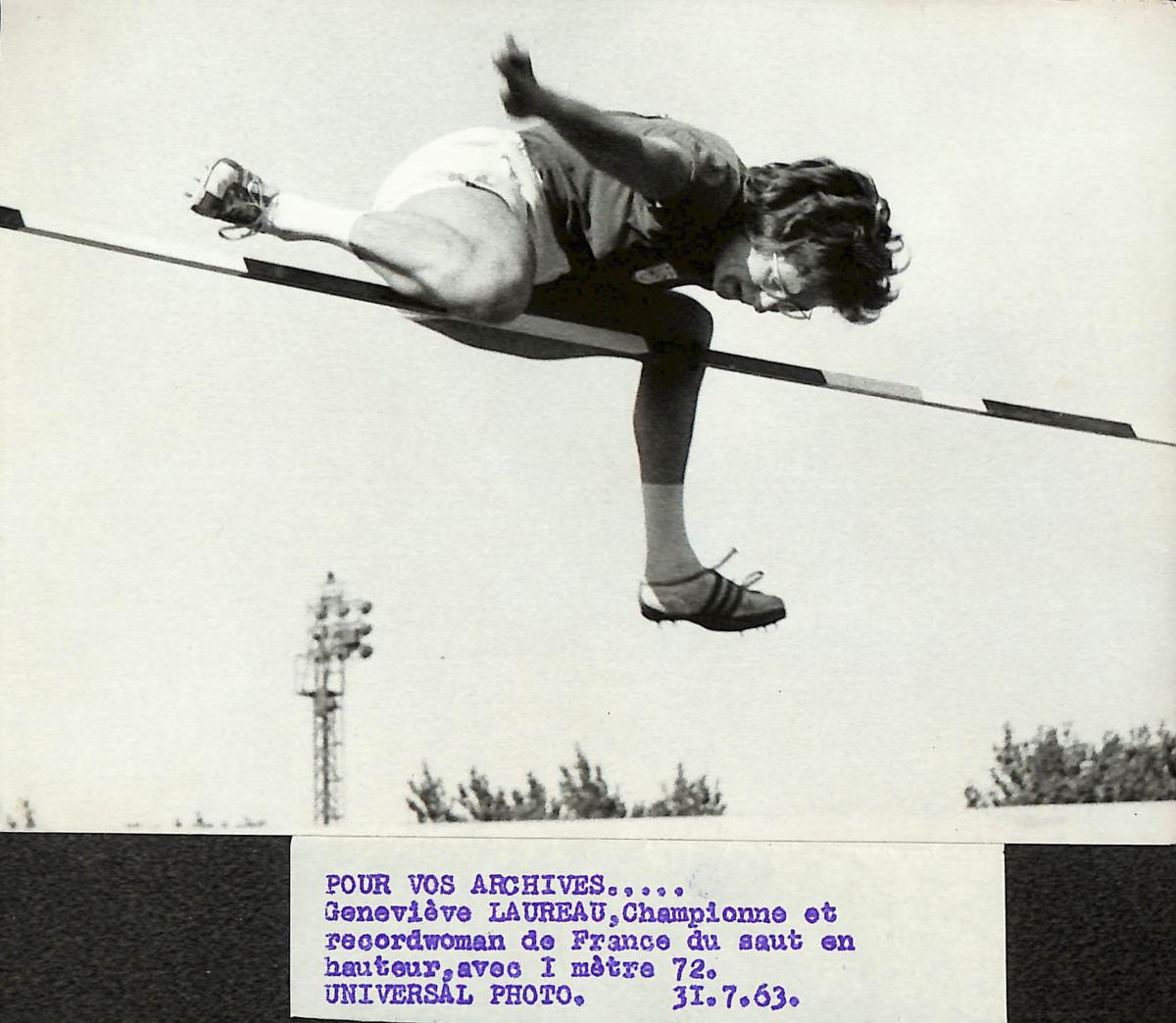 PHOTO ORIGINALE DE PRESSE DE GENEVIÈVE LAUREAU (SAUT EN HAUTEUR) LE 31 JUILLET 1963. Format 18 x 13 cm. Bon état.