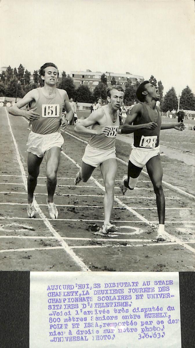 PHOTO ORIGINALE DE PRESSE DE RUEELI, POLET ET ISSA (800 MÈTRES) LE 3 JUIN 1963. Format 13 x 18 cm. Bon état.