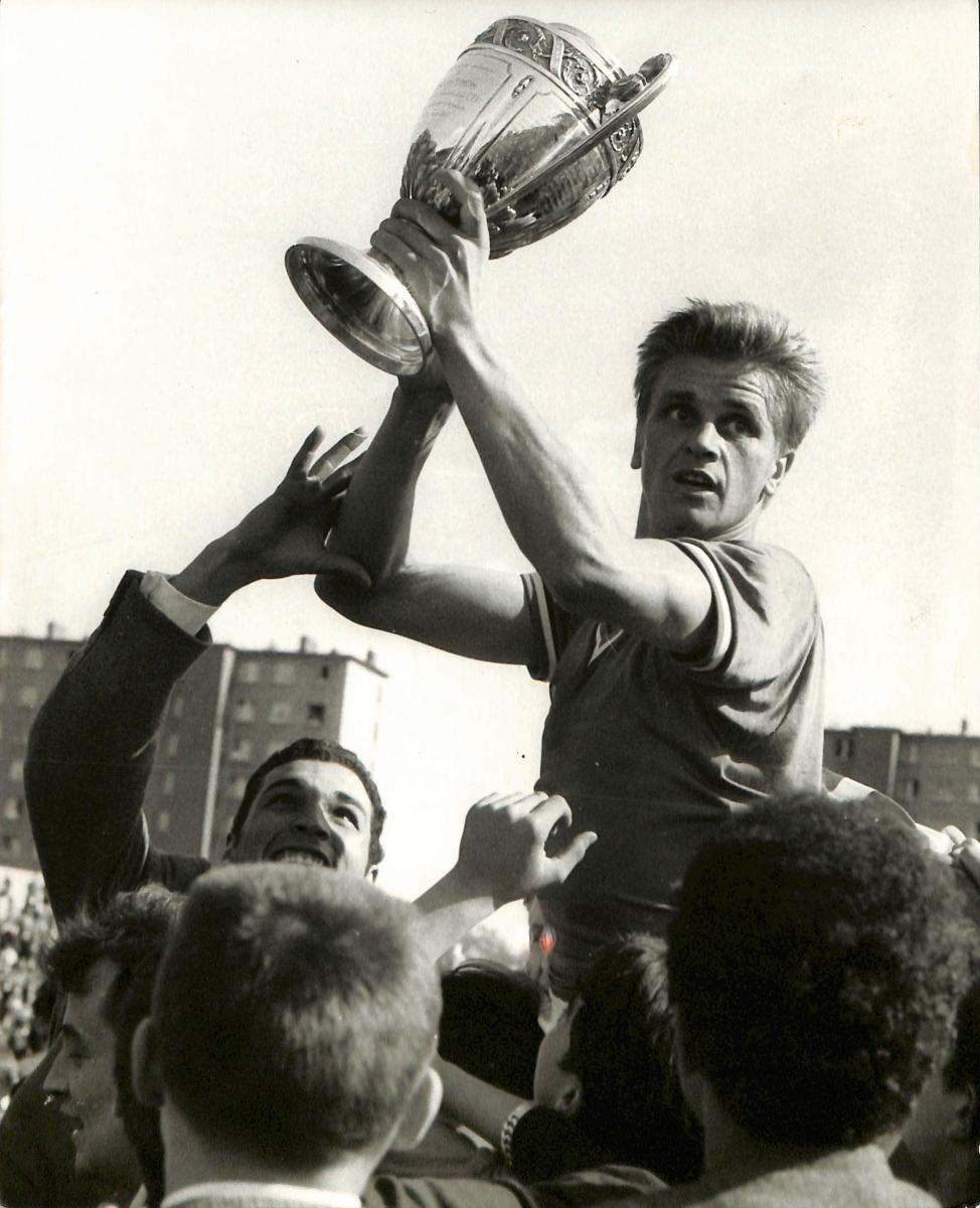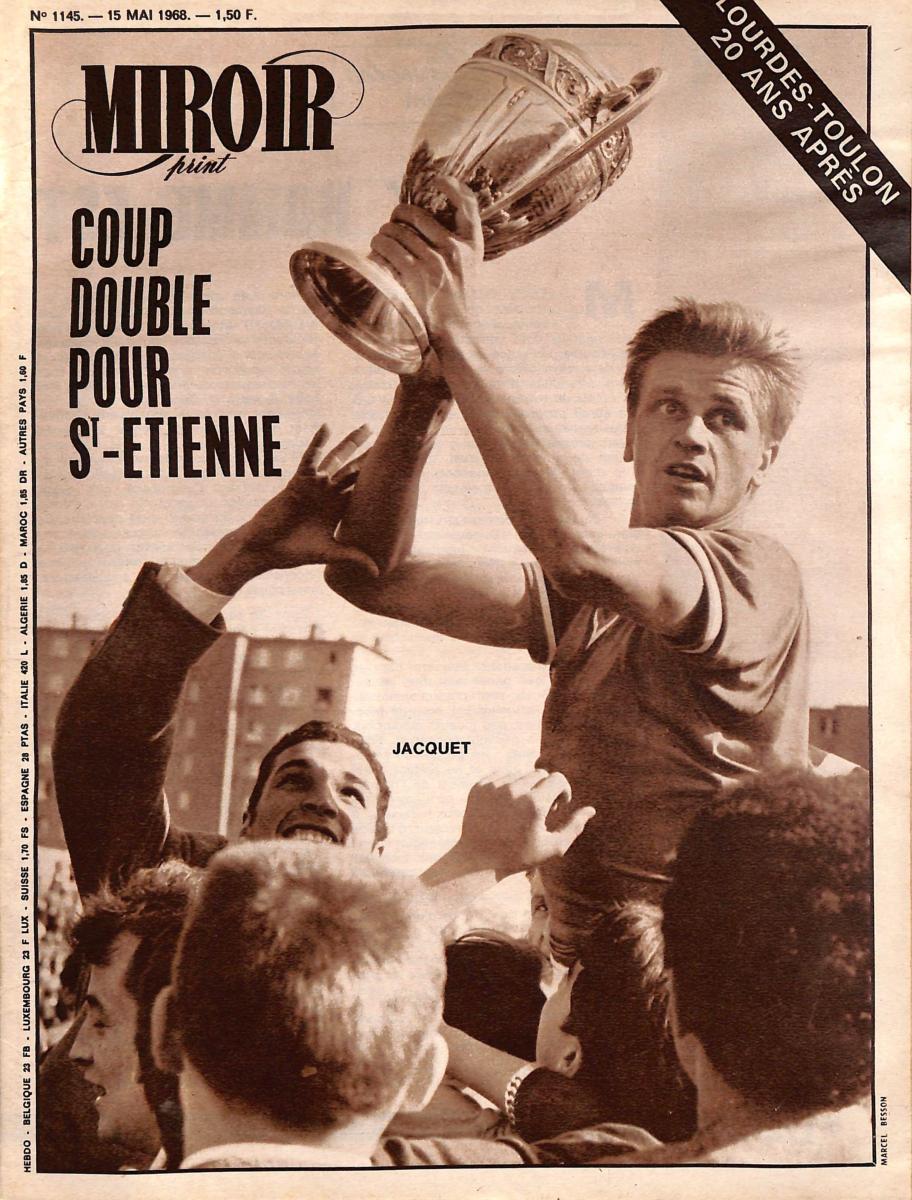 PHOTO ORIGINALE DE PRESSE D'AIMÉ JACQUET VAINQUEUR DE LA COUPE DE FRANCE 1968 (PHOTO D'ILLUSTRATION DU MIROIR SPRINT N°1145 QUI N’AI PAS VENDUE AVEC LA PHOTO). Format 24,5x30 cm. Bon état.