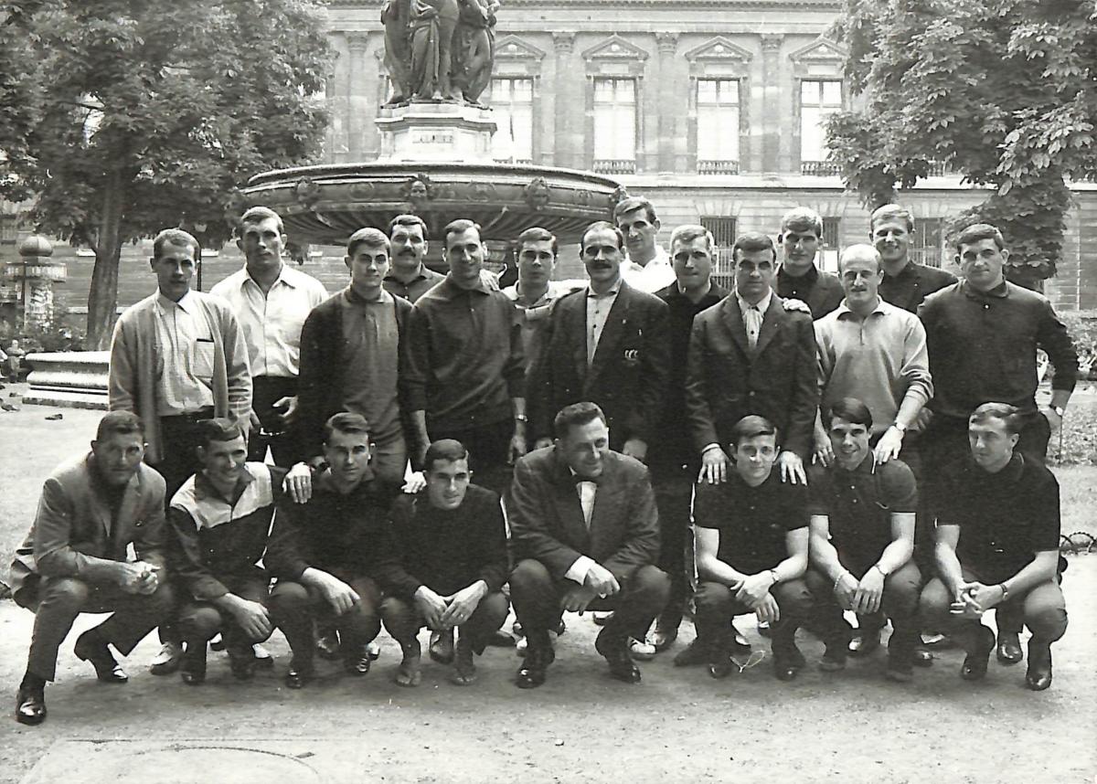 PHOTO ORIGINALE DE PRESSE DE L'ÉQUIPE DE FRANCE AVANT LA TOURNÉE EN AFRIQUE DU SUD LE 3 JUILLET 1964. Format 18 x 13 cm. Bon état.