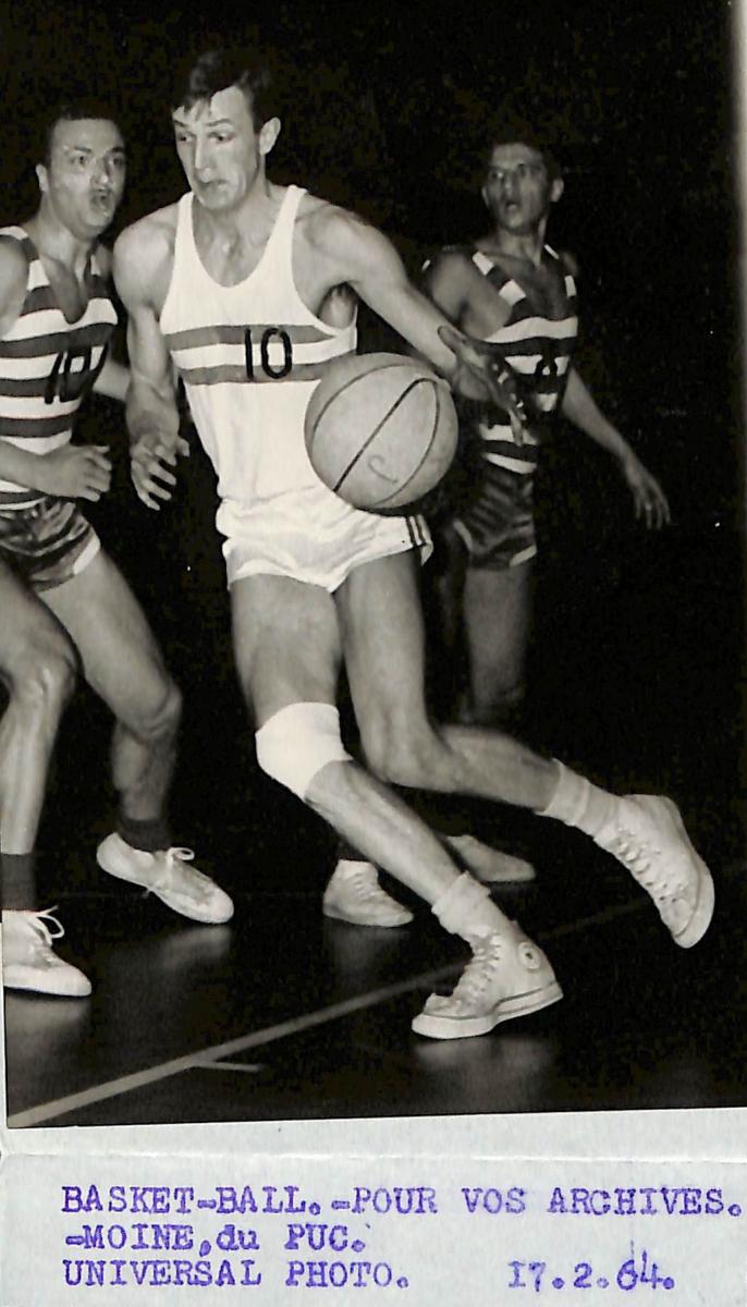 PHOTO ORIGINALE DE PRESSE DE MOINE DANS L'ÉQUIPE DU P.U.C. CONTRE BAGNOLET LE 17 FÉVRIER 1964. Format 9 x 13 cm. Bon état.