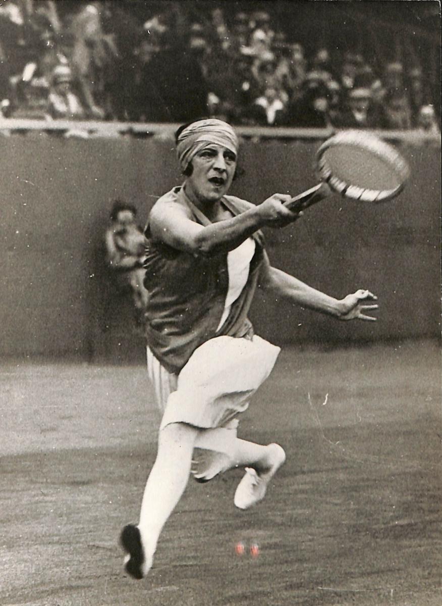 PHOTO ORIGINALE DE PRESSE DE SUZANNE LENGLEN EN PLEINE ACTION (PHOTO MEURISSE-VIOLLET). Format 18x24,5 cm. Bon état d'usage.