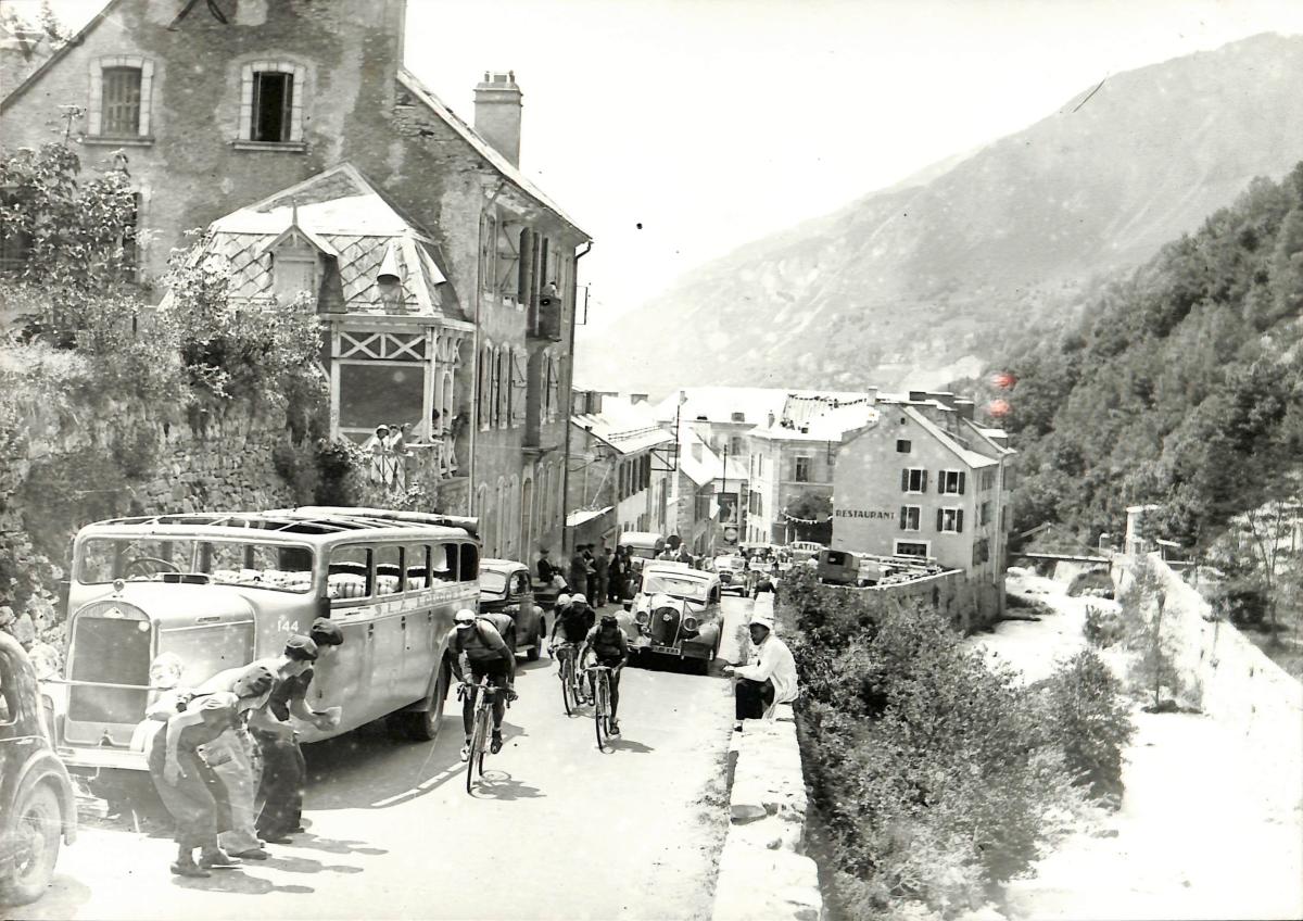 PHOTO TIRAGE MODERNE DE PRESSE DU TOUR DE FRANCE 1938 (PASSAGE À LOURDES). Format 21x29,5 cm. Bon état d'usage.