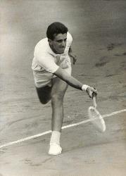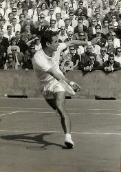PHOTO ORIGINALE DE PRESSE DE FRED STOLLE BATTANT MANUEL SANTANA POUR ATTEINDRE LA FINALE LE 4 JUILLET 1963. Format 13 x 18 cm. Bon état.