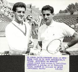 PHOTO ORIGINALE DE PRESSE DE LEWIS HOAD BATTANT PAUL RÉMY À ROLLAND GARROS LE 11 SEPTEMBRE 1960. Format 13 x 18 cm. Bon état.