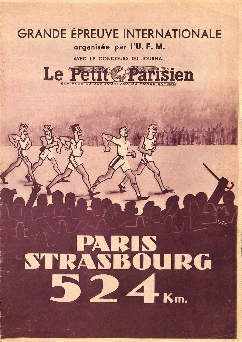 PROGRAMME ATHLÉTISME PARIS-STRASBOURG 1935 ÉDITÉ PAR LE PETIT PARISIEN. 16 PAGES. FORMAT 25x35 CM. ÉTAT D'USAGE.