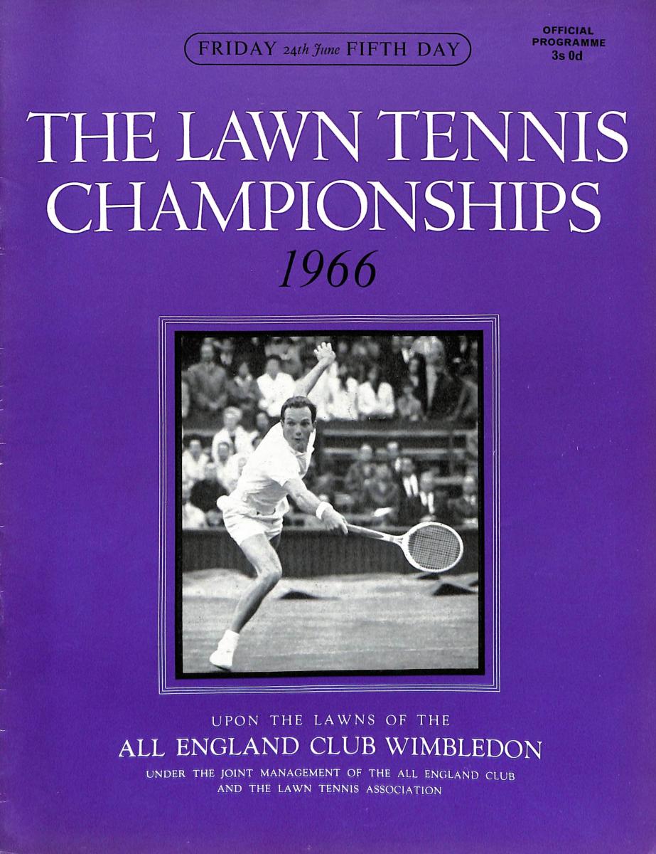 Programme du Tournoi de Wimbledon du vendredi 24 juin 1966. 38 pages. Format 23,5x30 cm. État d'usage.