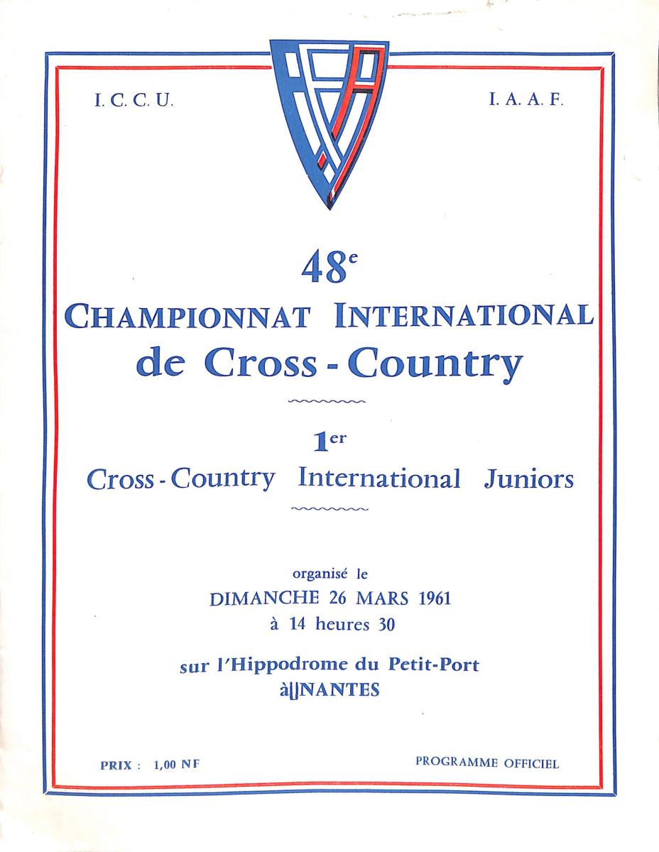 PROGRAMME OFFICIEL 48E CHAMPIONNAT INTERNATIONAL DE CROSS-COUNTRY LE 26 MARS 1961 AVEC FEUILLES DE RÉSULTATS. État d'usage.