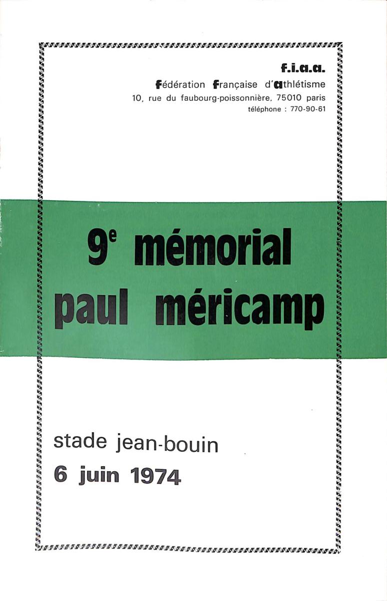 PROGRAMME OFFICIEL ATHLÉTISME 9E MÉMORIAL PAUL MÉRICAMP 1974