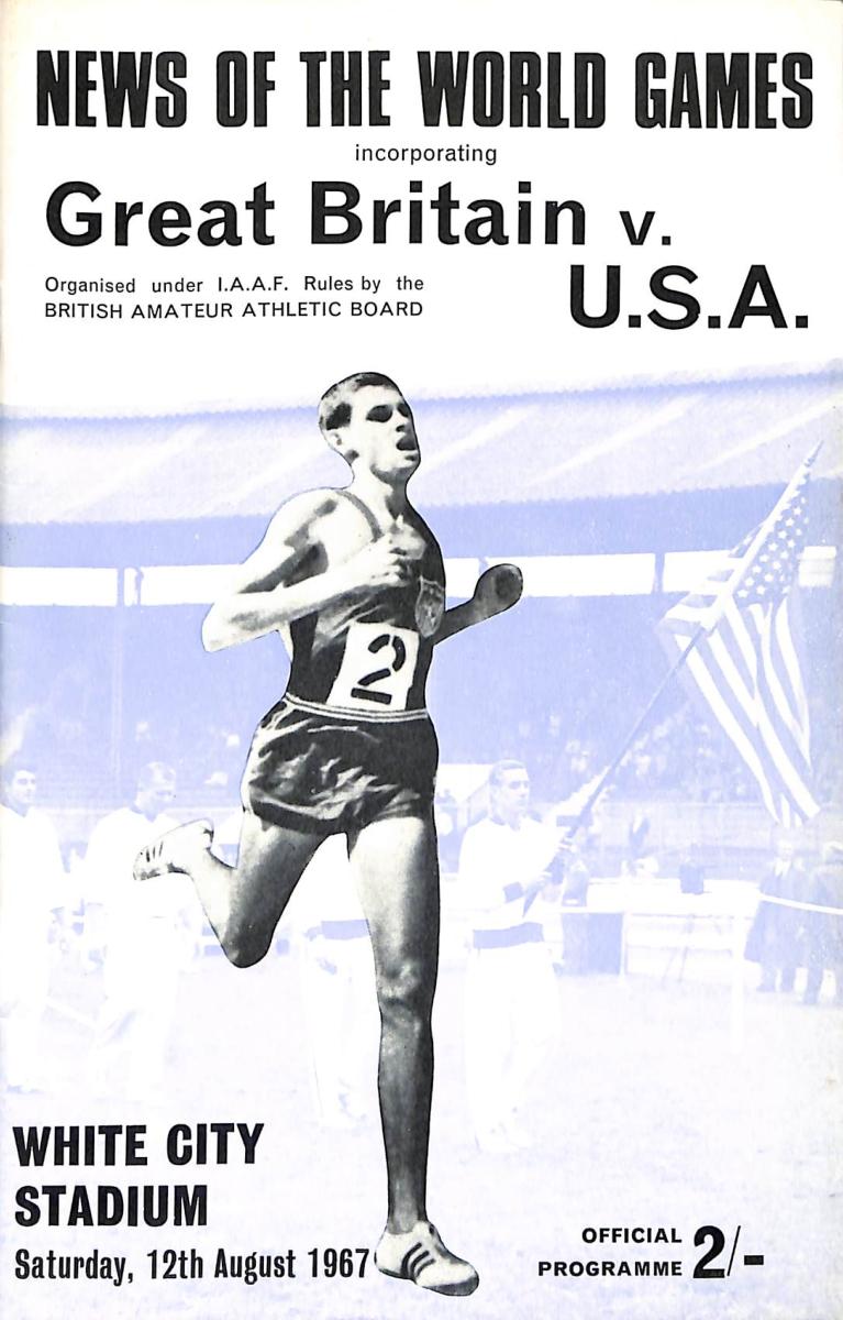 PROGRAMME OFFICIEL ATHLÉTISME GRANDE-BRETAGNE VS USA LE 12 AOÛT 1967. État d'usage.