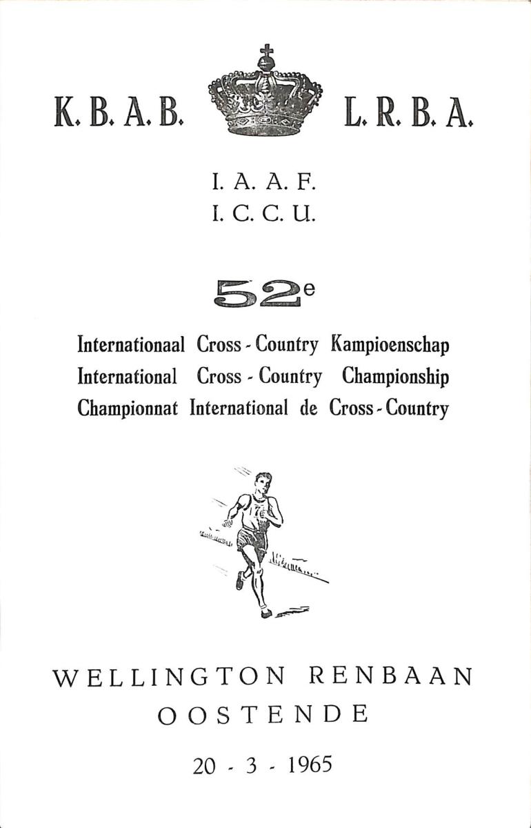 PROGRAMME OFFICIEL CHAMPIONNAT INTERNATIONAL DE CROSS-COUNTRY LE 20 MARS 1965 ANNOTÉ DE RÉSULTATS EN ANGLAIS. État d'usage.