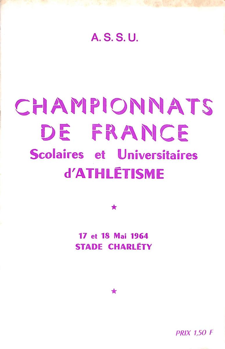 PROGRAMME OFFICIEL CHAMPIONNATS DE FRANCE ATHLÉTISME LE 17 ET 18 MAI 1964 ANNOTÉ DE RÉSULTATS. État d'usage.