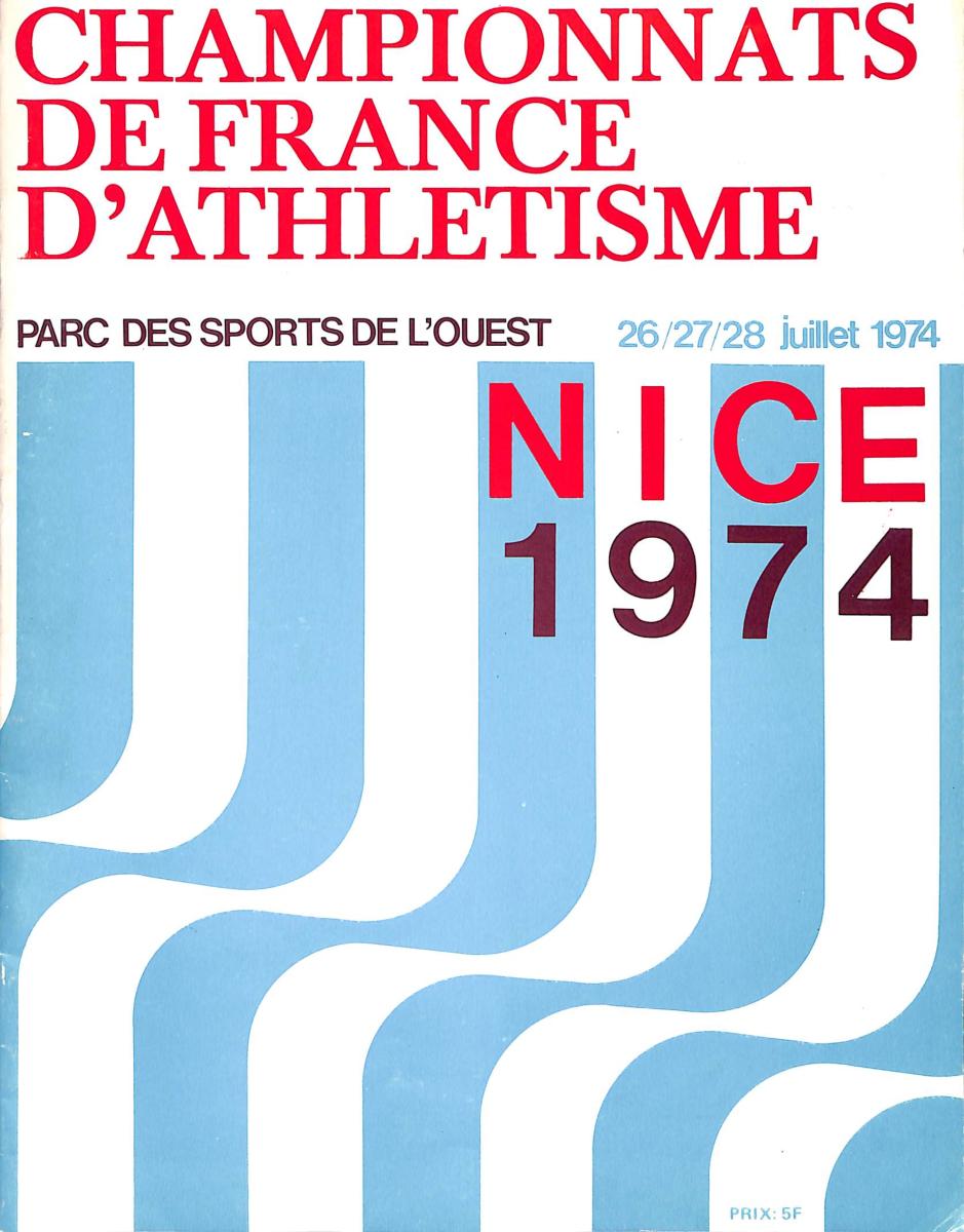 PROGRAMME OFFICIEL CHAMPIONNATS DE FRANCE ATHLÉTISME LES 26, 27 ET 28 JUILLET 1974 ANNOTÉ DE RÉSULTATS. État d'usage.
