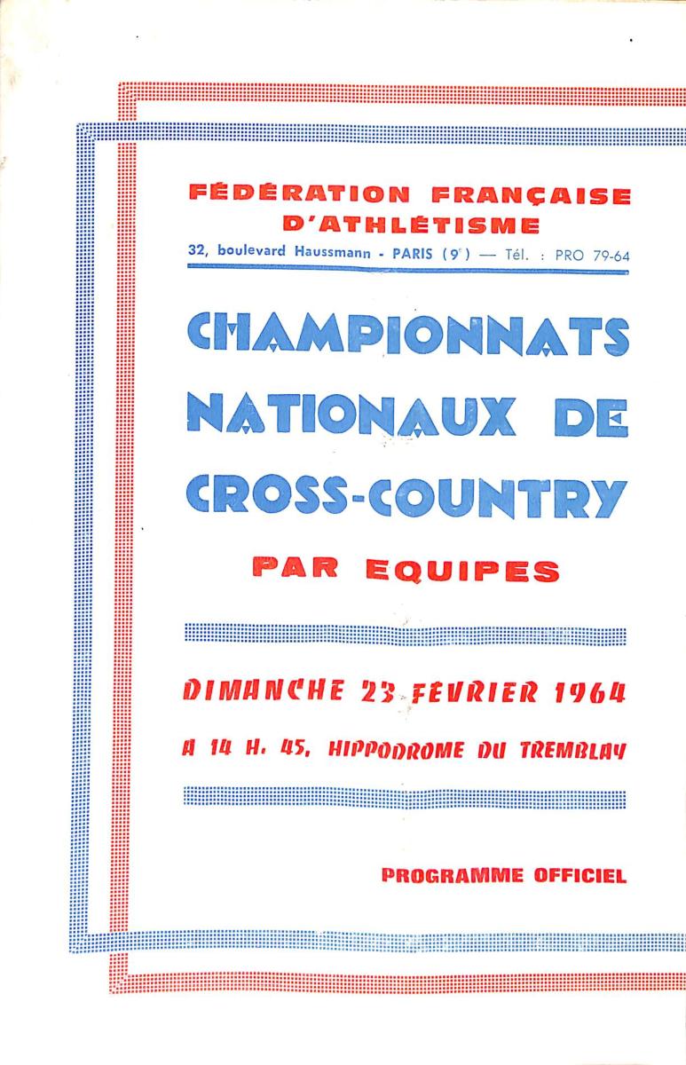 PROGRAMME OFFICIEL CHAMPIONNATS NATIONAUX DE CROSS-COUNTRY PAR ÉQUIPES LE 23 FÉVRIER 1964. État d'usage.