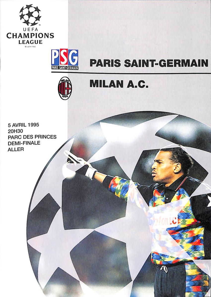 PROGRAMME OFFICIEL CHAMPIONS LEAGUE ENTRE LE PARIS SAINT-GERMAIN ET L'AC MILAN LE 5 AVRIL 1995. MATCH DE LA 1/2 FINALE ALLER. Bon état.
