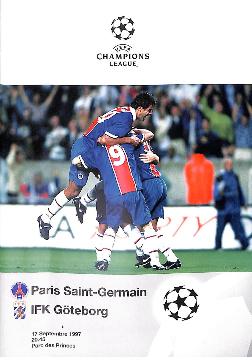 PROGRAMME OFFICIEL CHAMPIONS LEAGUE ENTRE LE PARIS SAINT-GERMAIN ET L'IFK GÖTEBORG LE 17 SEPTEMBRE 1997. BON ÉTAT.