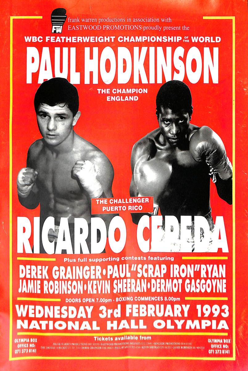 Programme officiel du Championnat du Monde entre Paul Hodkinson et Ricardo Cepeda du 3 février 1993. Bon état.