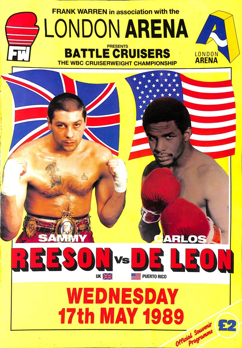 Programme officiel du combat entre Sammy Reeson et Carlos De Leon du 17 mai 1989 en anglais. Bon état.