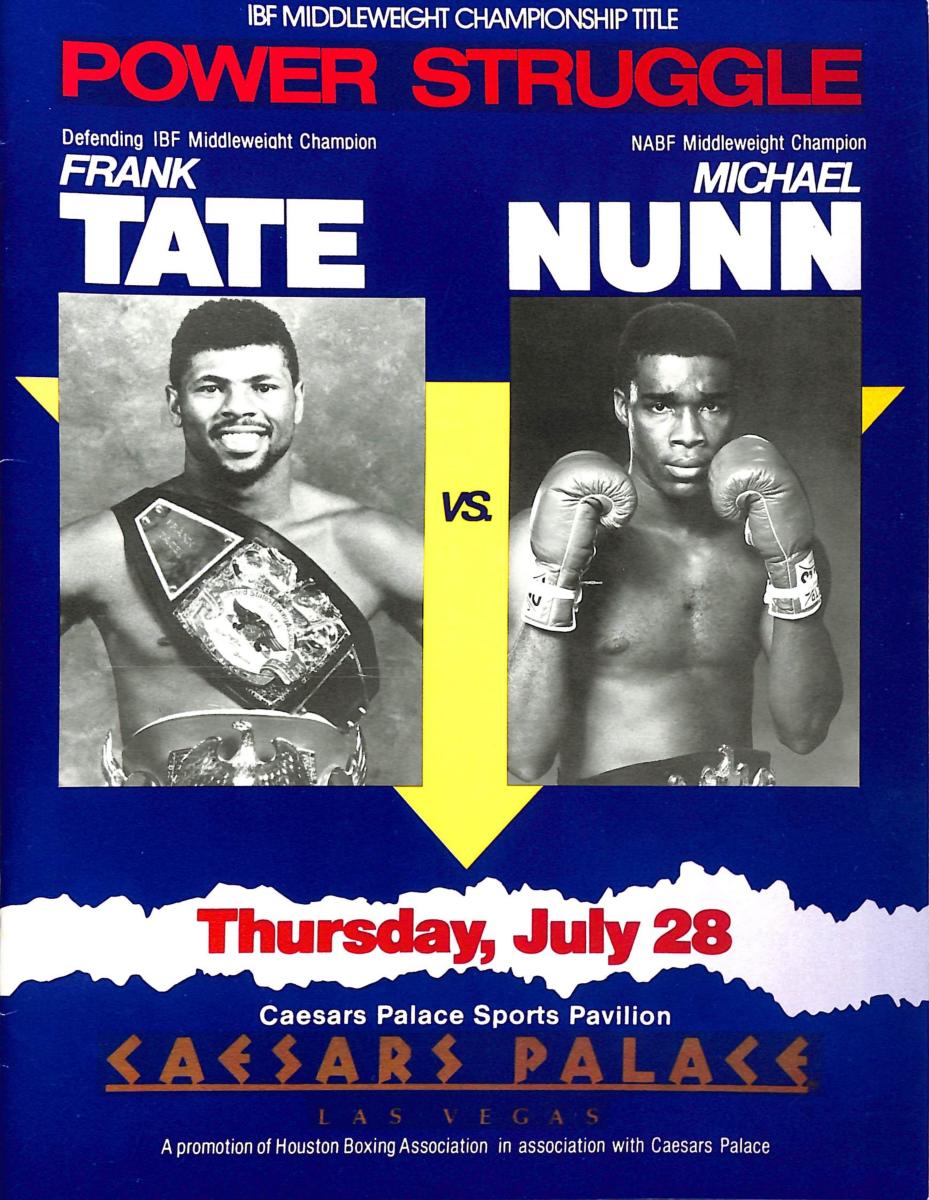 Programme officiel du combat entre Frank Tate et Michael Nunn du 28 juillet 1988 en anglais. Bon état.