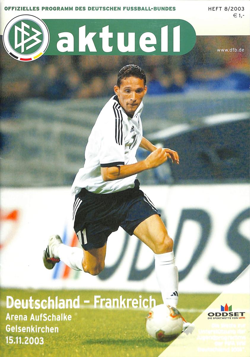 PROGRAMME OFFICIEL DU MATCH ENTRE L'ALLEMAGNE ET LA FRANCE LE 15 NOVEMBRE 2003. MATCH AMICAL INTERNATIONAL. Bon état.