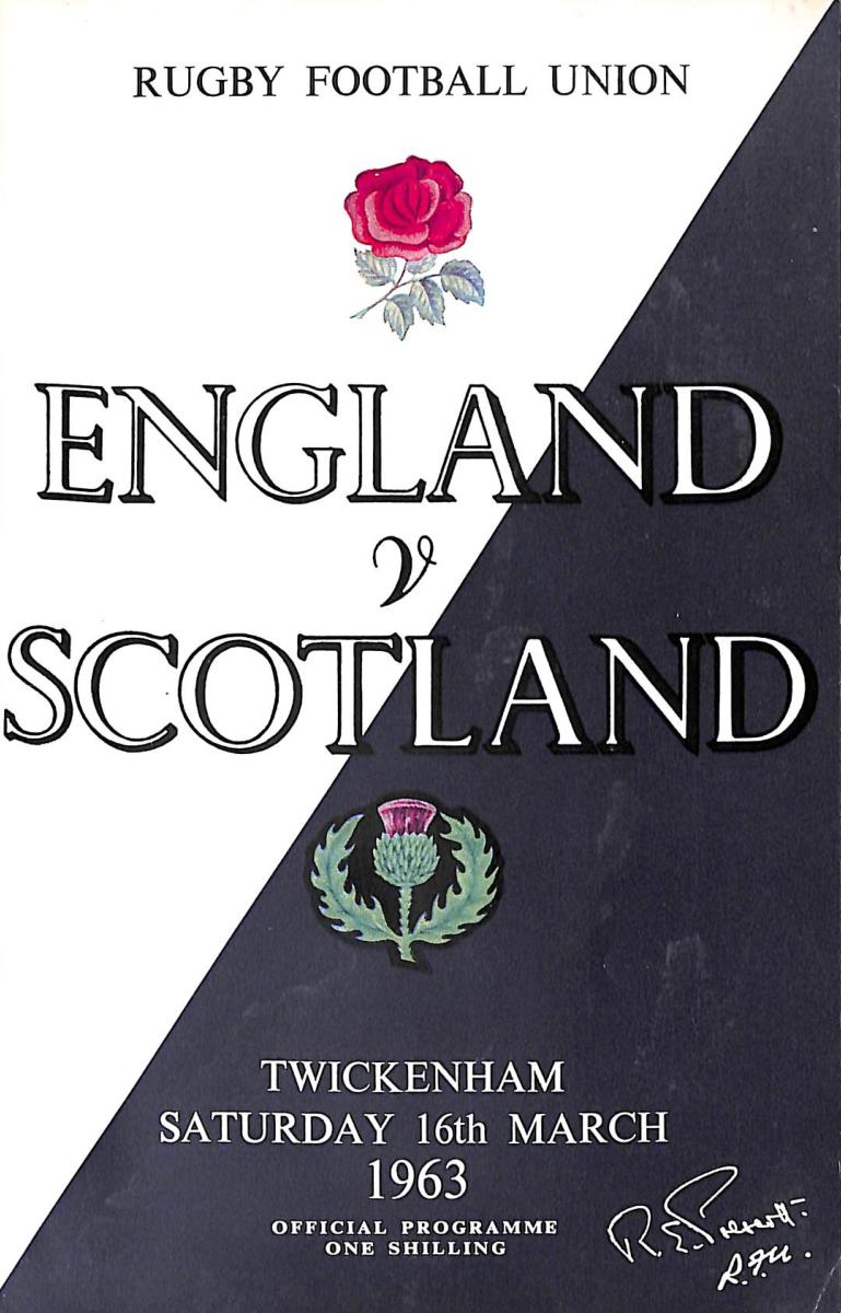 PROGRAMME OFFICIEL DU MATCH OPPOSANT L'ANGLETERRE À L'ÉCOSSE LE 16 MARS 1963 LORS DU TOURNOI DES 5 NATIONS. ÉTAT D'USAGE.