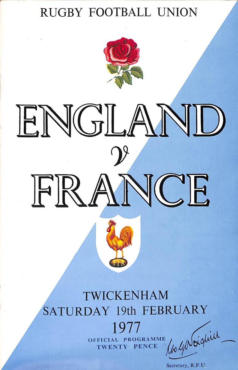 PROGRAMME OFFICIEL DU MATCH OPPOSANT L'ANGLETERRE À LA FRANCE LE 19 FÉVRIER 1977 LORS DU TOURNOI DES 5 NATIONS. ÉTAT D'USAGE.