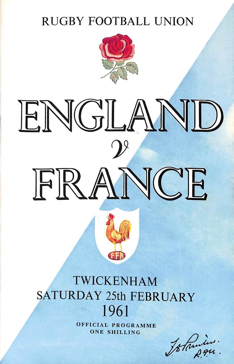PROGRAMME OFFICIEL DU MATCH OPPOSANT L'ANGLETERRE À LA FRANCE LE 25 FÉVRIER 1961 LORS DU TOURNOI DES 5 NATIONS. ÉTAT D'USAGE.