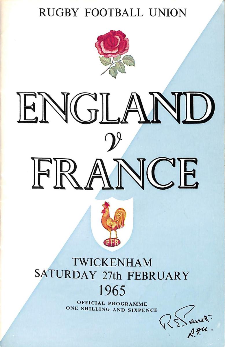 PROGRAMME OFFICIEL DU MATCH OPPOSANT L'ANGLETERRE À LA FRANCE LE 27 FÉVRIER 1965 LORS DU TOURNOI DES 5 NATIONS. ÉTAT D'USAGE.