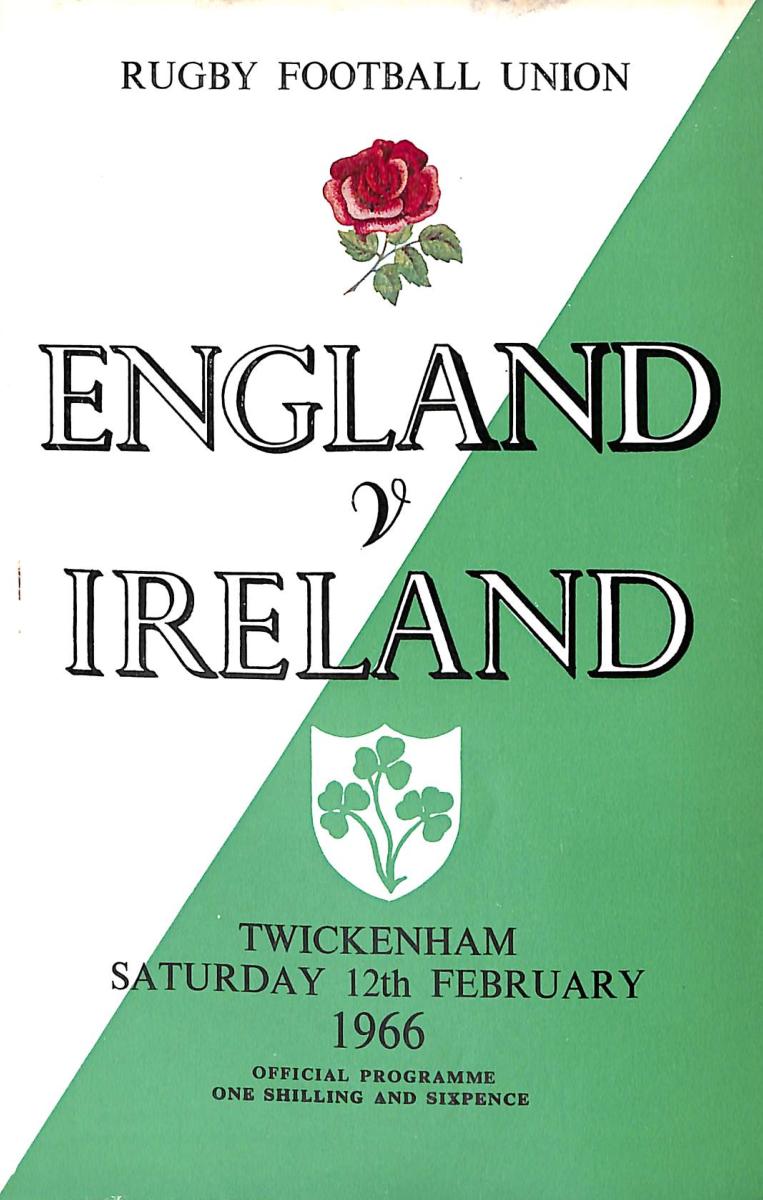 PROGRAMME OFFICIEL DU MATCH OPPOSANT L'ANGLETERRE À L'IRLANDE LE 12 FÉVRIER 1966 LORS DU TOURNOI DES 5 NATIONS. ÉTAT D'USAGE.