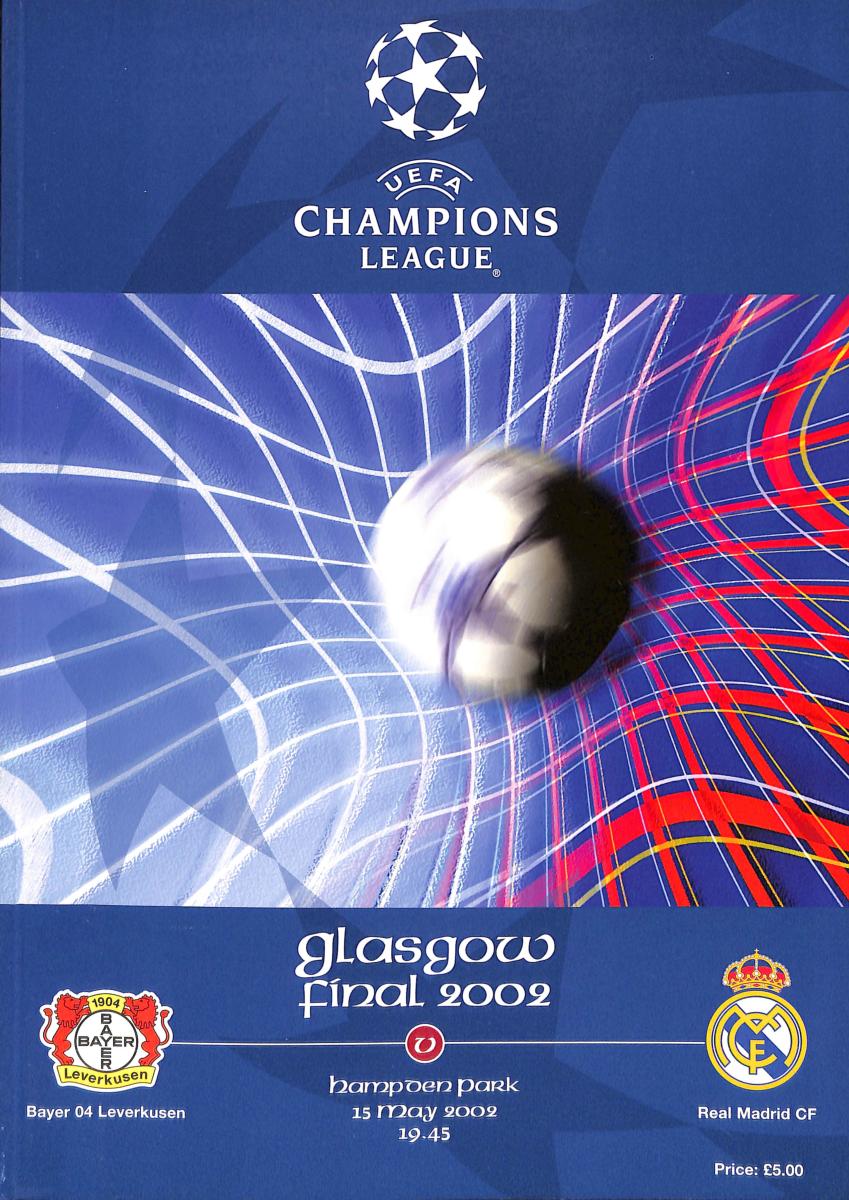 PROGRAMME OFFICIEL DU MATCH ENTRE LE BAYER 04 LEVERKUSEN ET LE REAL MADRID LE 15 MAI 2002. FINALE DE LA COUPE D'EUROPE. Bon état.
