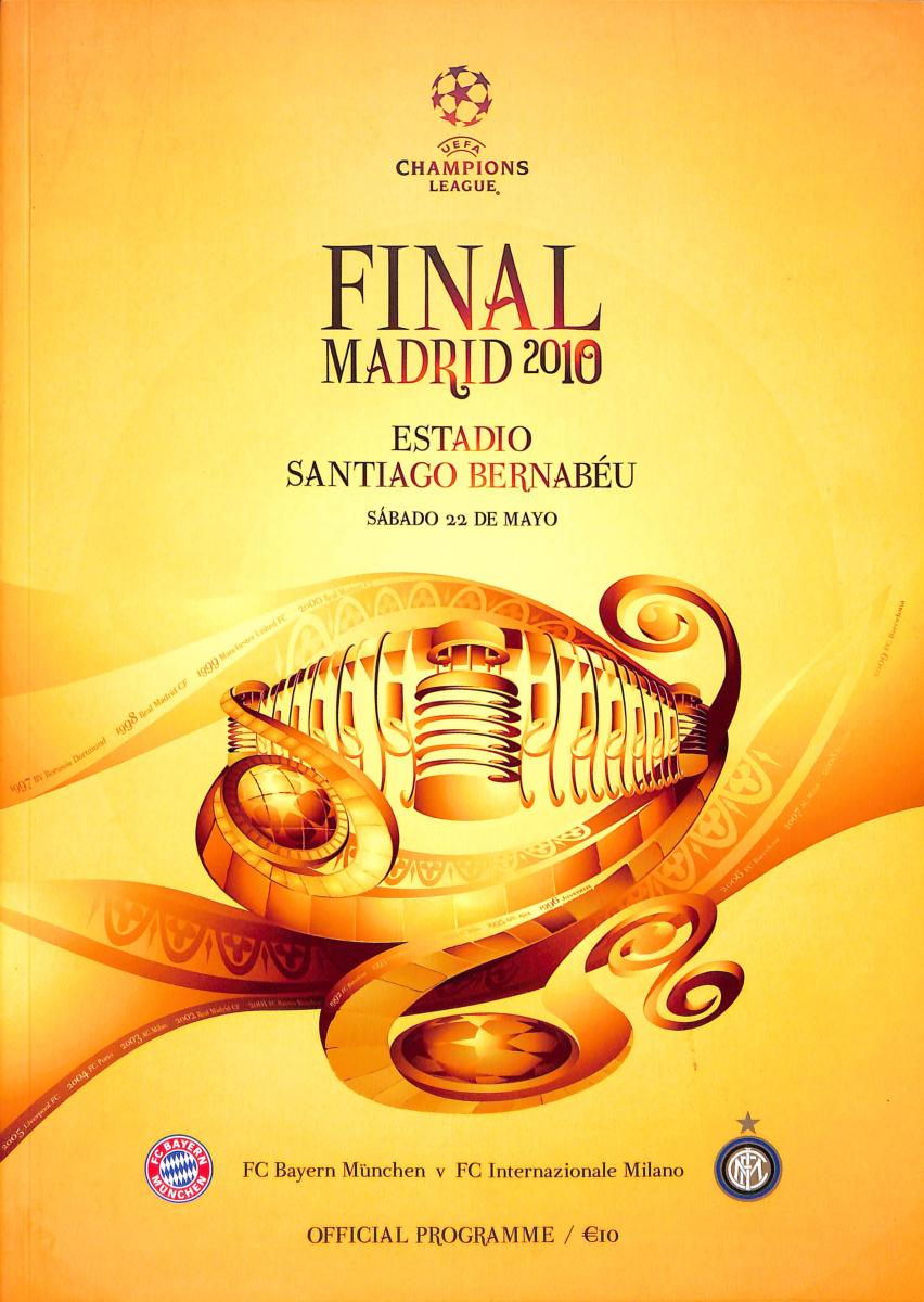 PROGRAMME OFFICIEL DU MATCH ENTRE LE BAYERN MUNICH ET L'INTER DE MILAN LE 22 MAI 2010. FINALE DE LA COUPE D'EUROPE. Bon état.