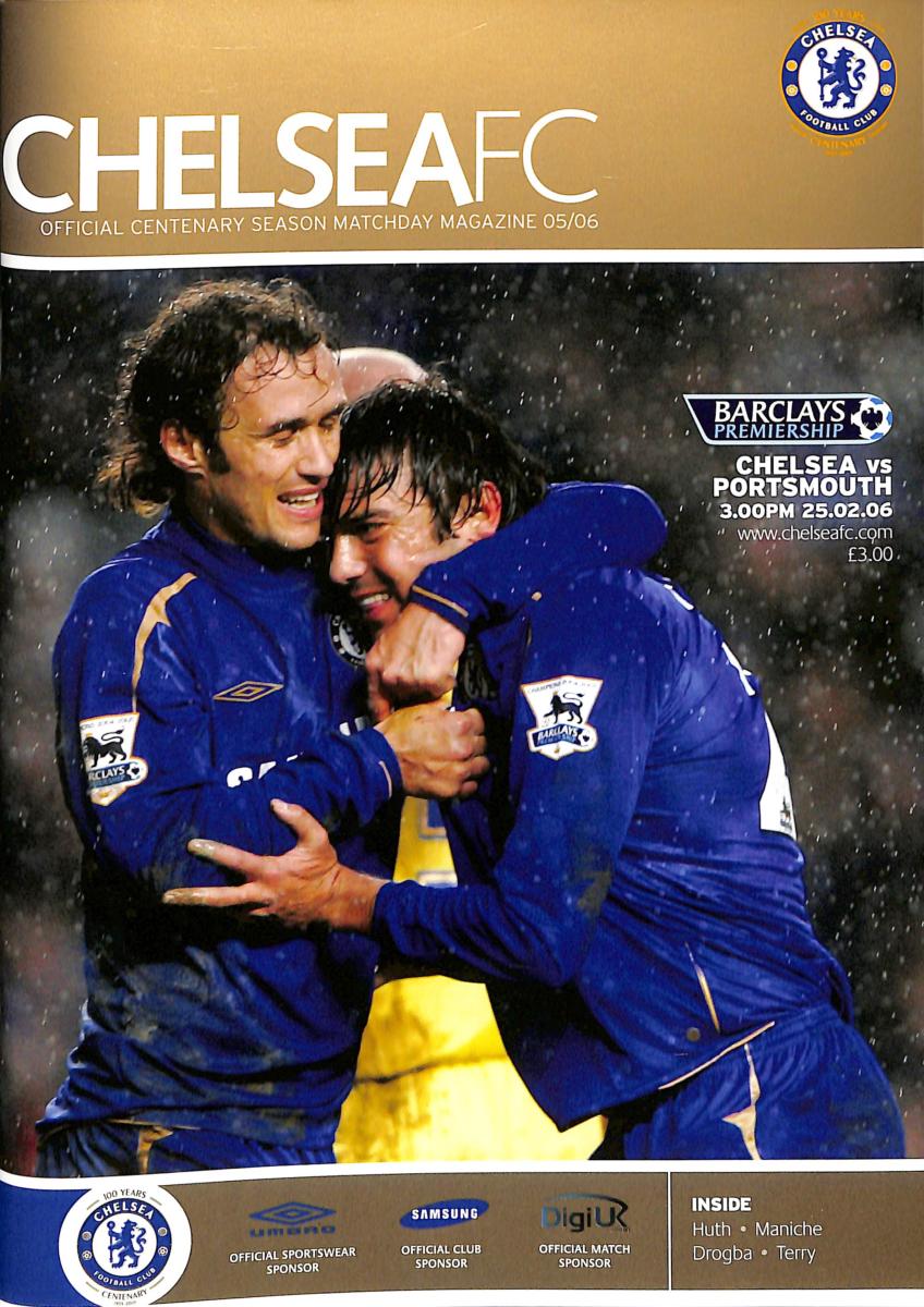 PROGRAMME OFFICIEL DU MATCH ENTRE CHELSEA FC ET PORTSMOUTH LE 25 FÉVRIER 2006. MATCH DE PREMIÈRE LIGUE BARCLAYS. Bon état.