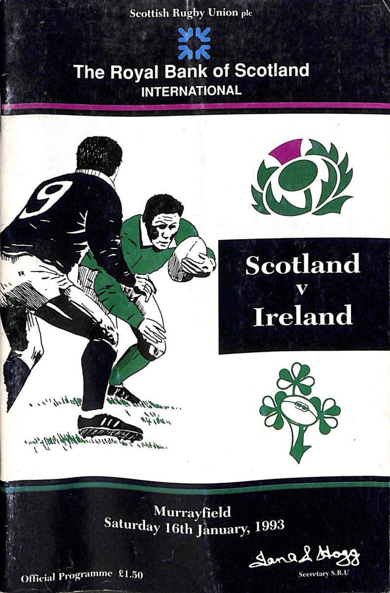 Programme officiel du match opposant l'Écosse à l'Irlande le 16 janvier 1993 lors du Tournoi des 5 Nations. État d'usage.