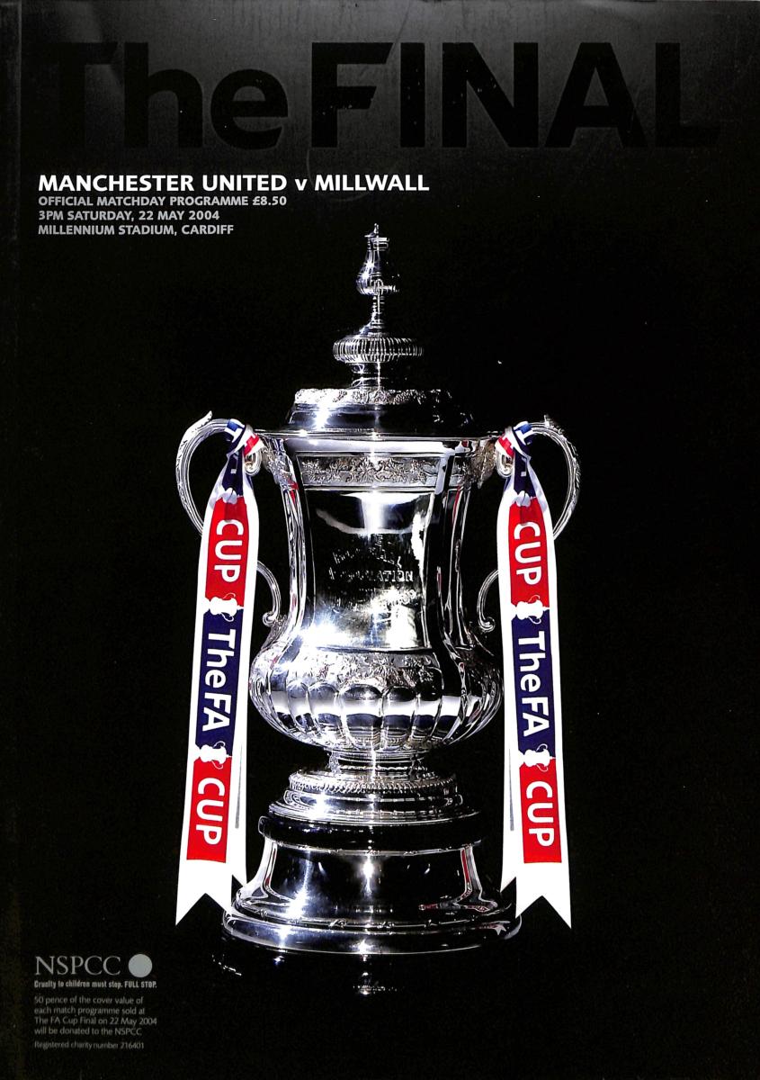 PROGRAMME OFFICIEL DU MATCH FA CUP ENTRE MANCHESTER UNITED ET MILLWALL LE 22 MAI 2004. FINALE DE LA COUPE D'ANGLETERRE 2004. Bon état.