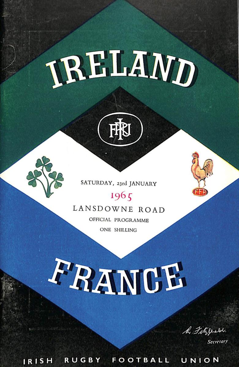 PROGRAMME OFFICIEL DU MATCH OPPOSANT L'IRLANDE À LA FRANCE LE 23 JANVIER 1965 LORS DU TOURNOI DES 5 NATIONS. ÉTAT D'USAGE.