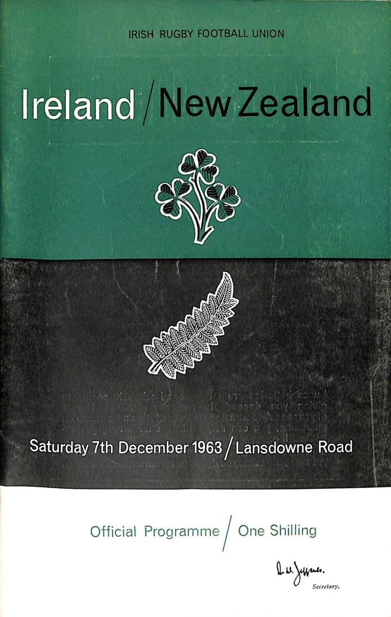 PROGRAMME OFFICIEL DU MATCH OPPOSANT L'IRLANDE À LA NOUVELLE-ZÉLANDE LE 7 DÉCEMBRE 1963. ÉTAT D'USAGE.