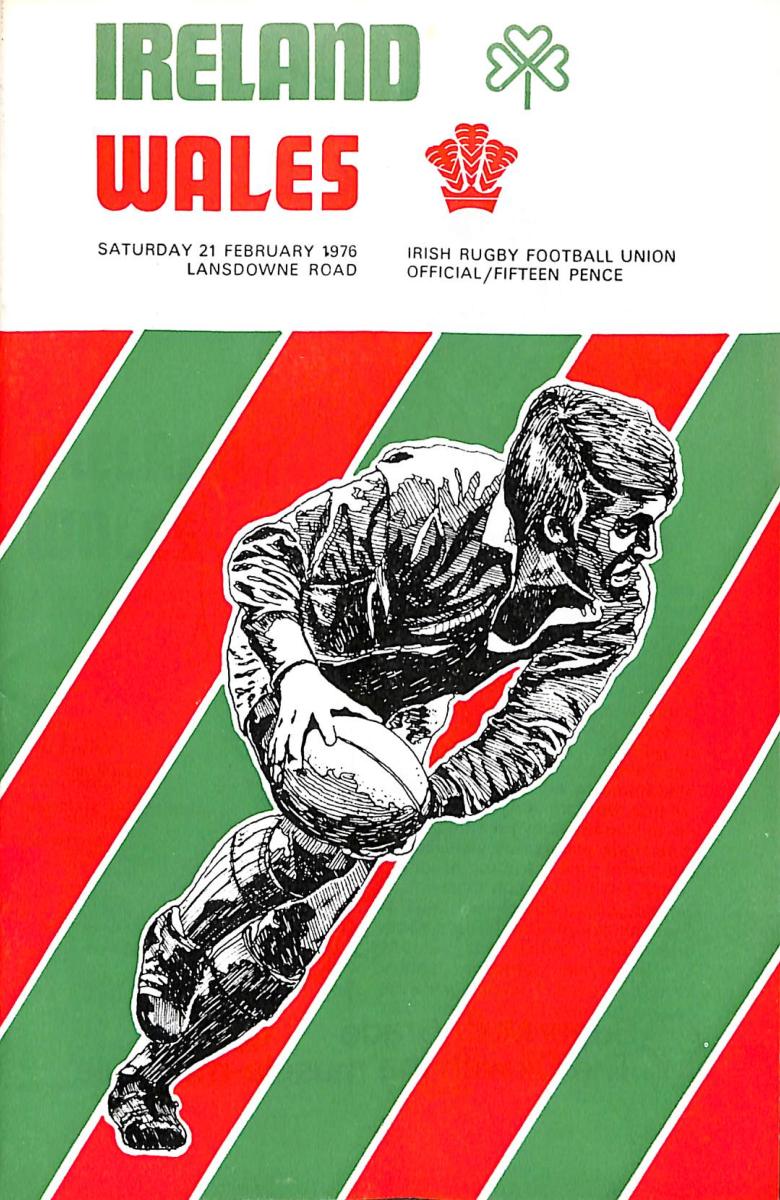PROGRAMME OFFICIEL DU MATCH OPPOSANT L'IRLANDE AU PAYS DE GALLES LE 21 FÉVRIER 1976 LORS DU TOURNOI DES 5 NATIONS. ÉTAT D'USAGE.