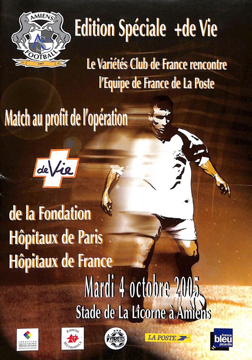 PROGRAMME OFFICIEL DU MATCH ENTRE LE VARIÉTÉS CLUB DE FRANCE ET LA FRANCE (POSTE) LE 4 OCTOBRE 2005. MATCH CARITATIF. Bon état.