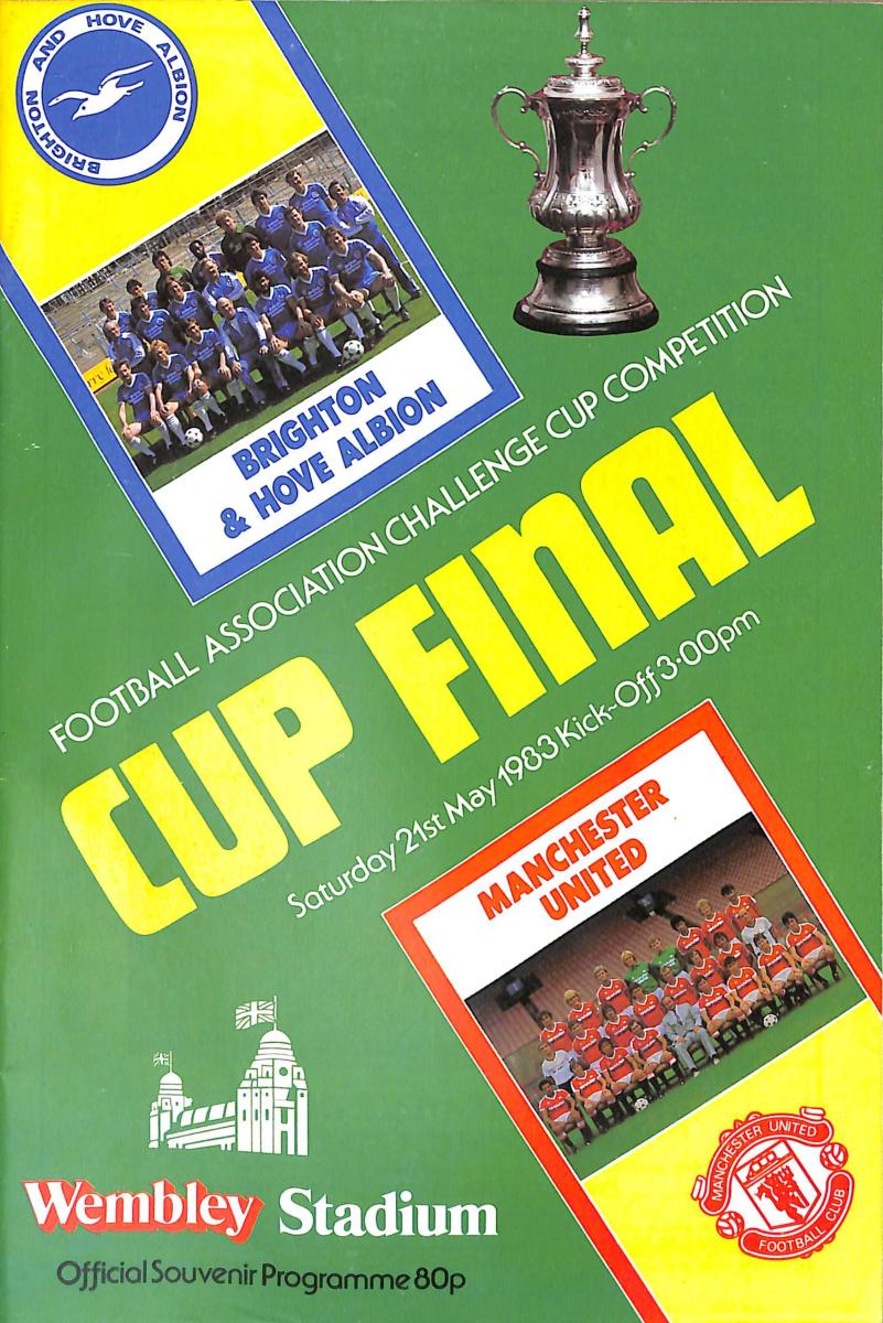 PROGRAMME OFFICIEL FINALE FA CUP (COUPE D'ANGLETERRE) ENTRE MANCHESTER UNITED ET LE BRIGHTON & HOVE ALBION LE 21 MAI 1983. BON ÉTAT.
