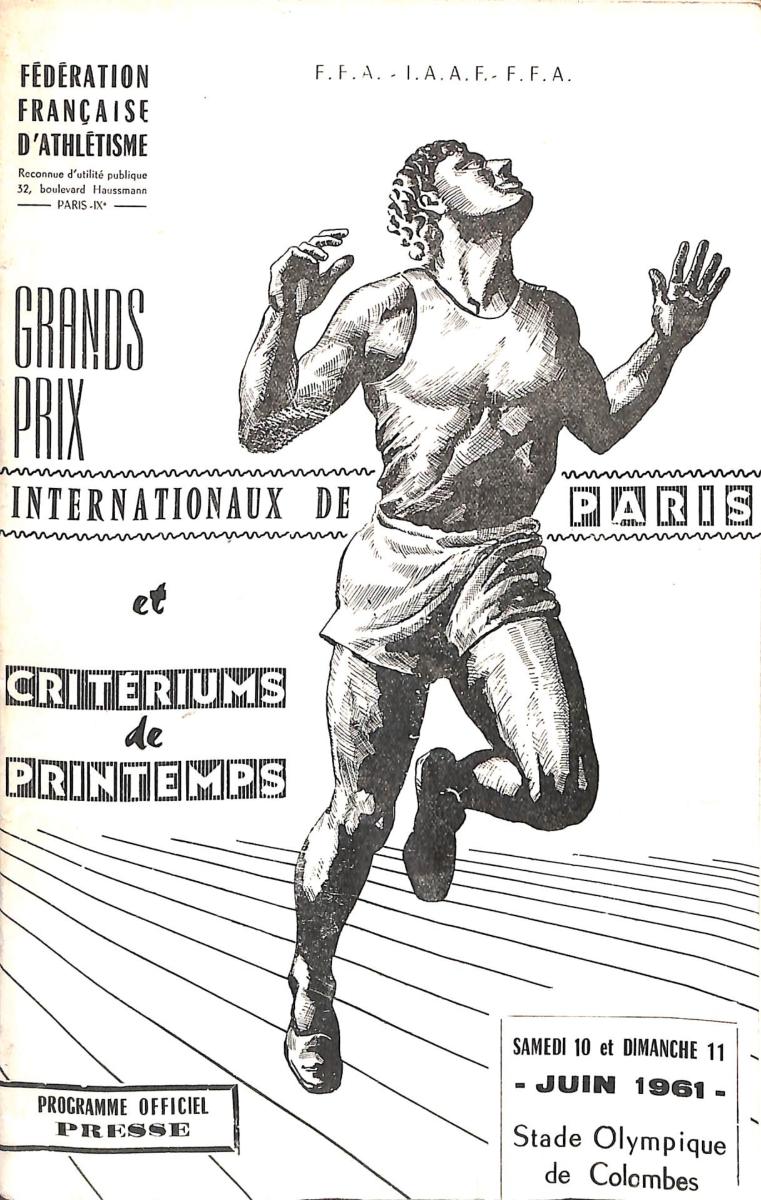 PROGRAMME OFFICIEL GRANDS PRIX INTERNATIONAUX DE PARIS ATHLÉTISME LE 10 ET 11 JUIN 1961 ANNOTÉ DE RÉSULTATS. État d'usage.