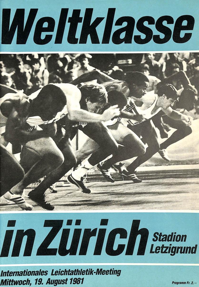 PROGRAMME OFFICIEL MEETING INTERNATIONAL ATHLÉTISME LE 19 AOÛT 1981 EN ALLEMAND AVEC FEUILLE ET ANNOTATION DE RÉSULTATS. État d'usage.