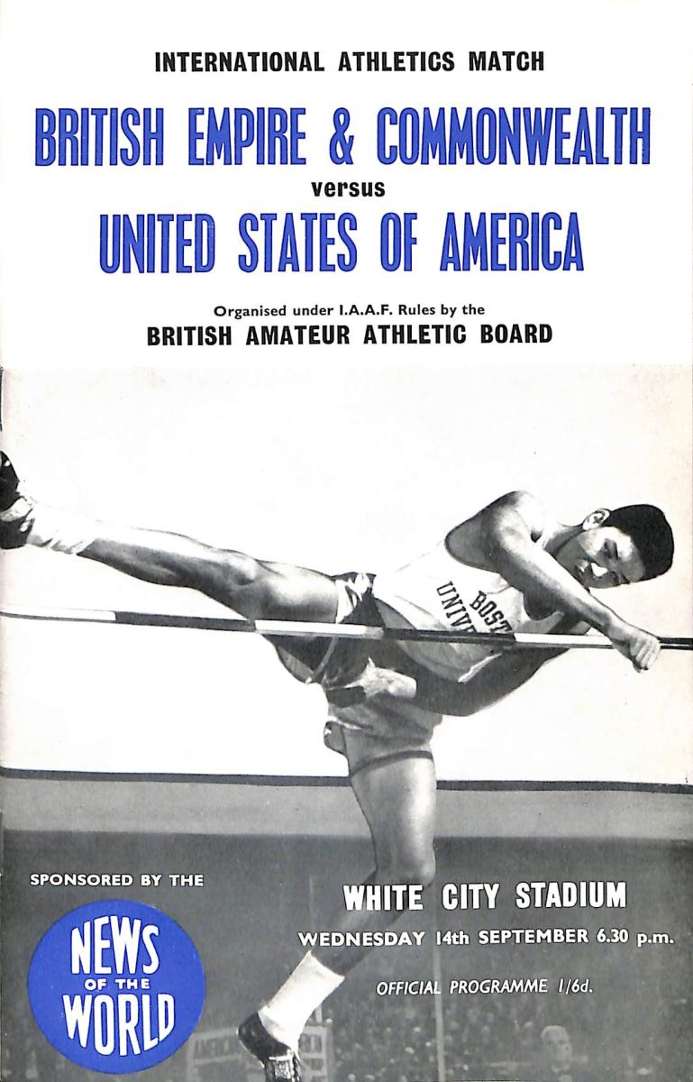 PROGRAMME OFFICIEL RENCONTRES INTERNATIONALES ATHLÉTISME LE 14 SEPTEMBRE 1960 ANNOTÉ DE RÉSULTATS EN ANGLAIS. État d'usage.
